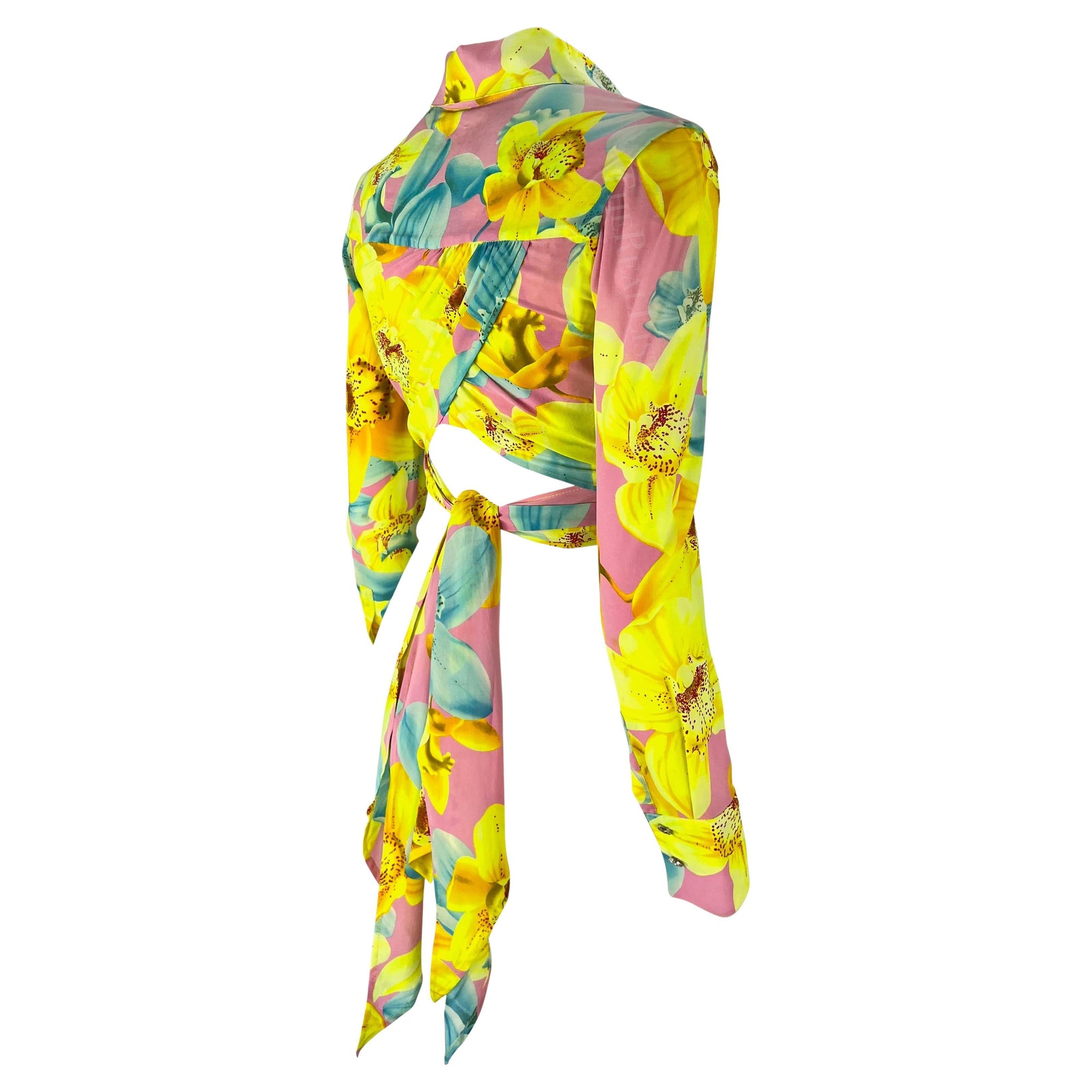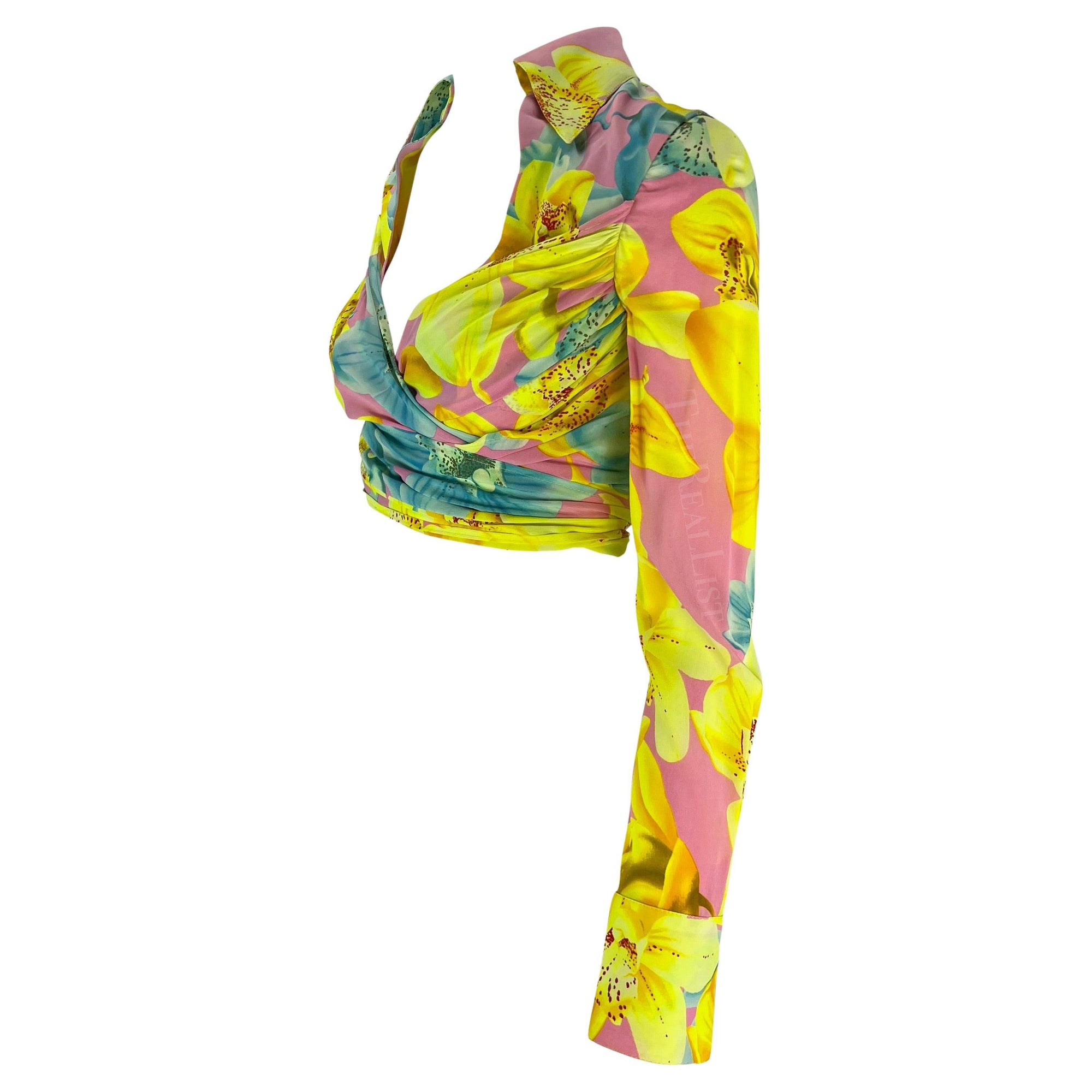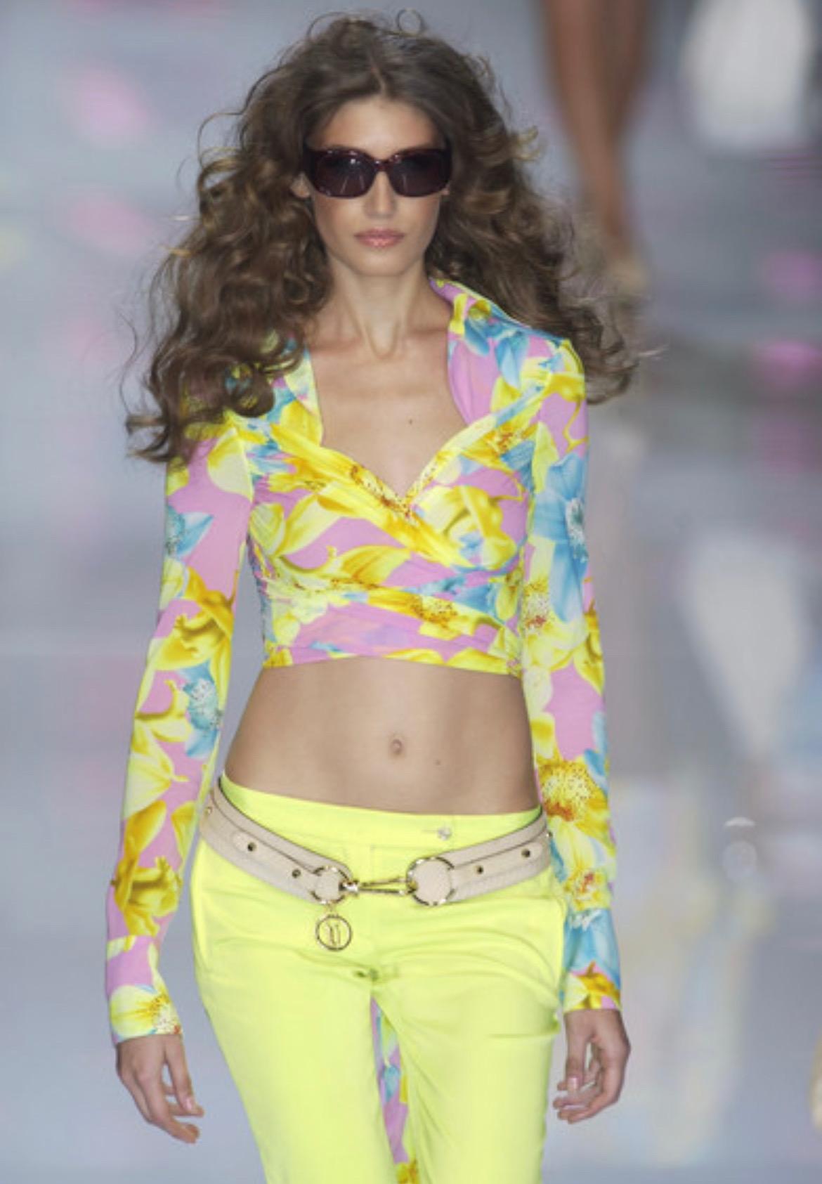 S/S 2004 Versace by Donatella Runway Pink Yellow Floral Runway Wrap Crop Top