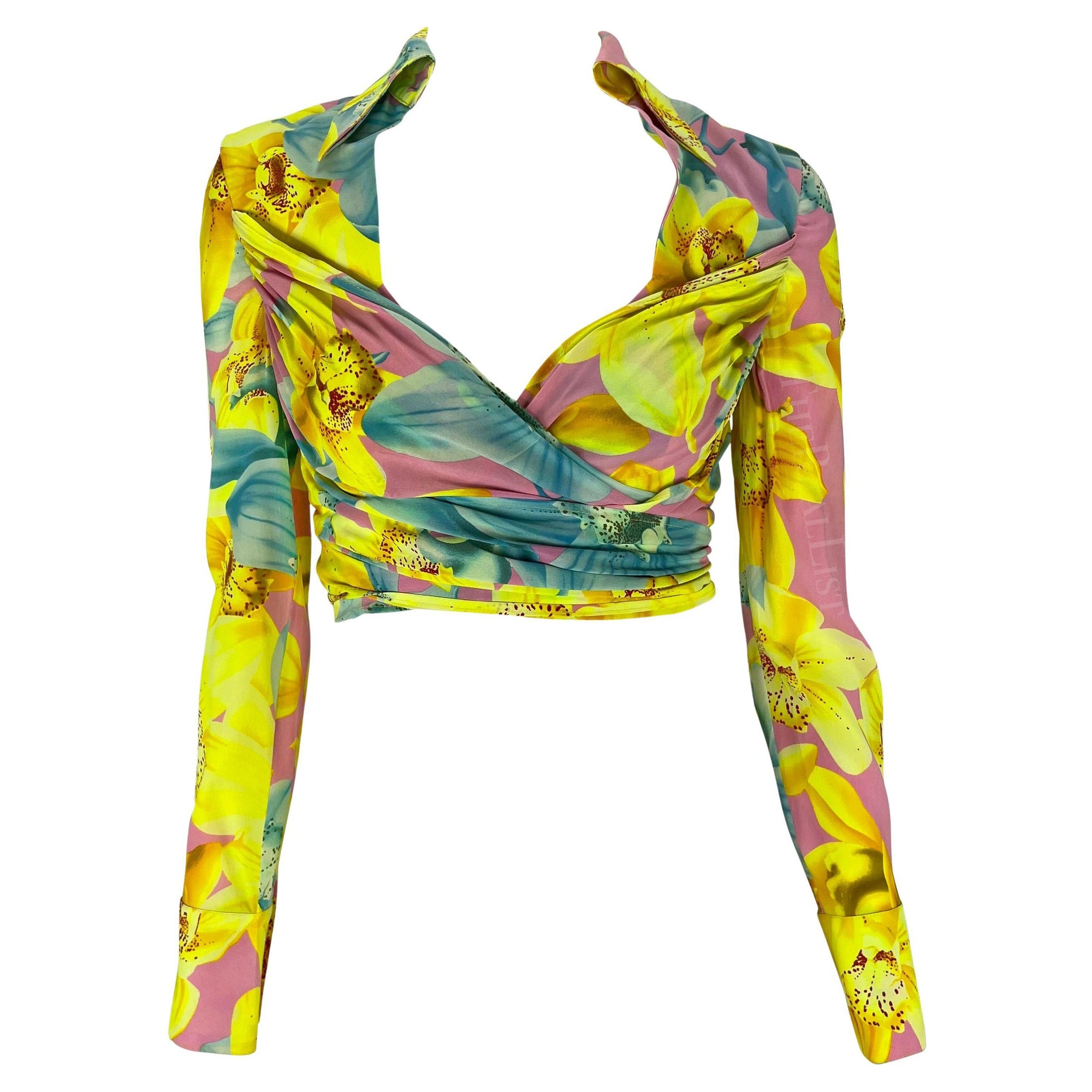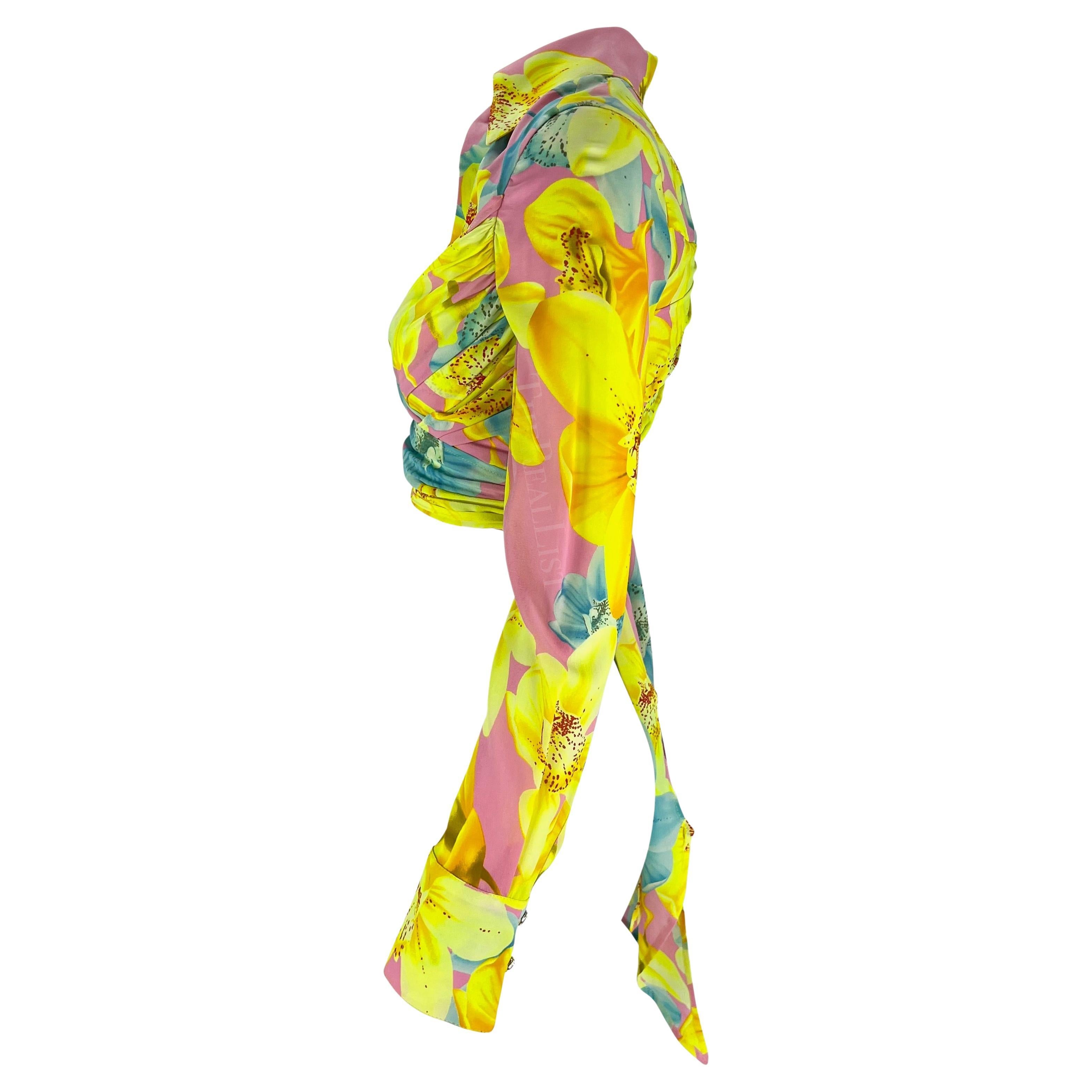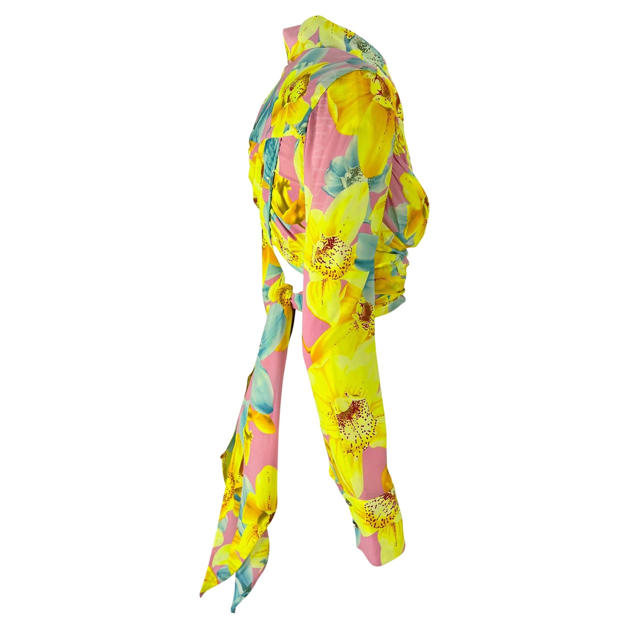 S/S 2004 Versace by Donatella Runway Pink Yellow Floral Runway Wrap Crop Top