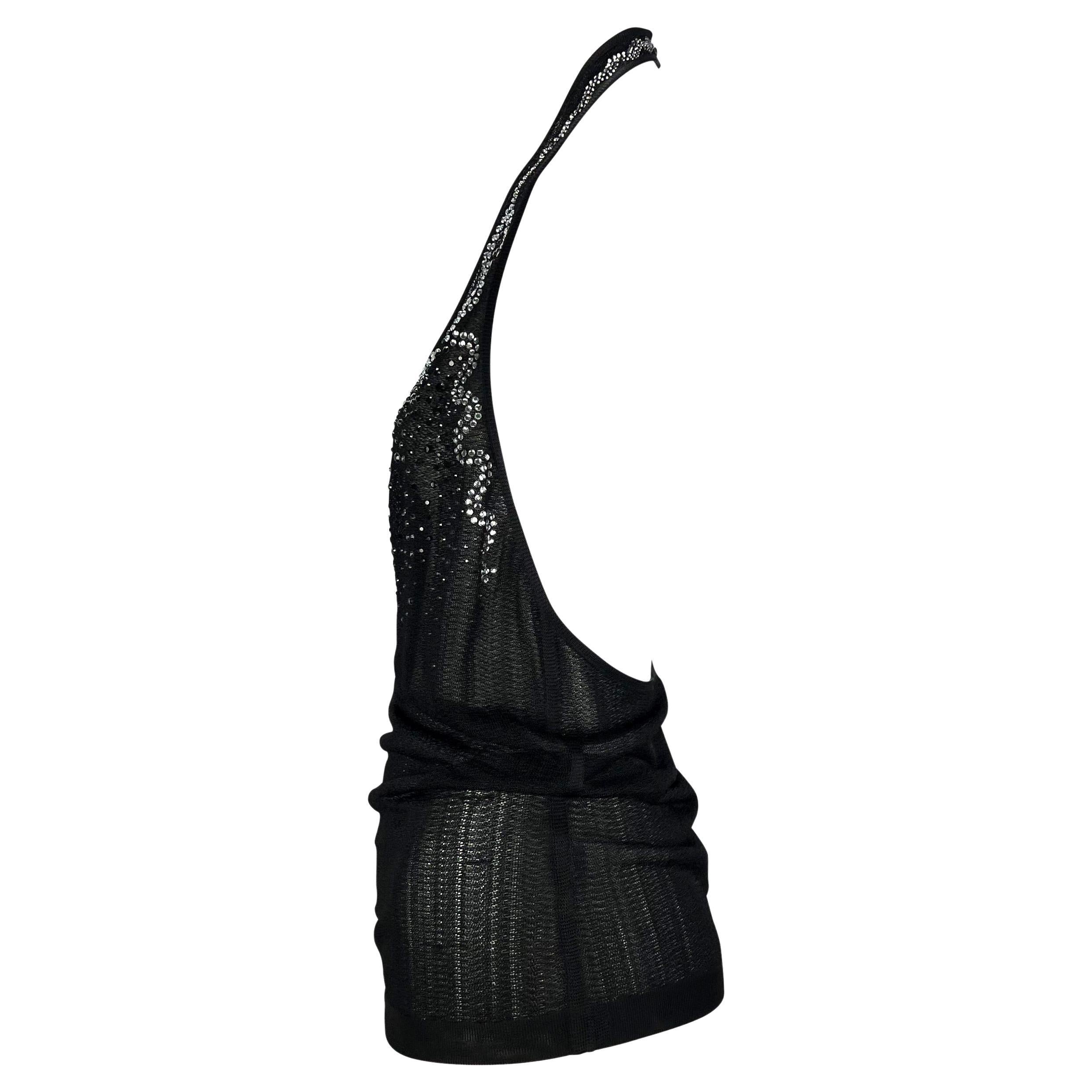 S/S 2005 Yves Saint Laurent Rhinestone Sheer Knit Viscose Halter Sleeveless Top