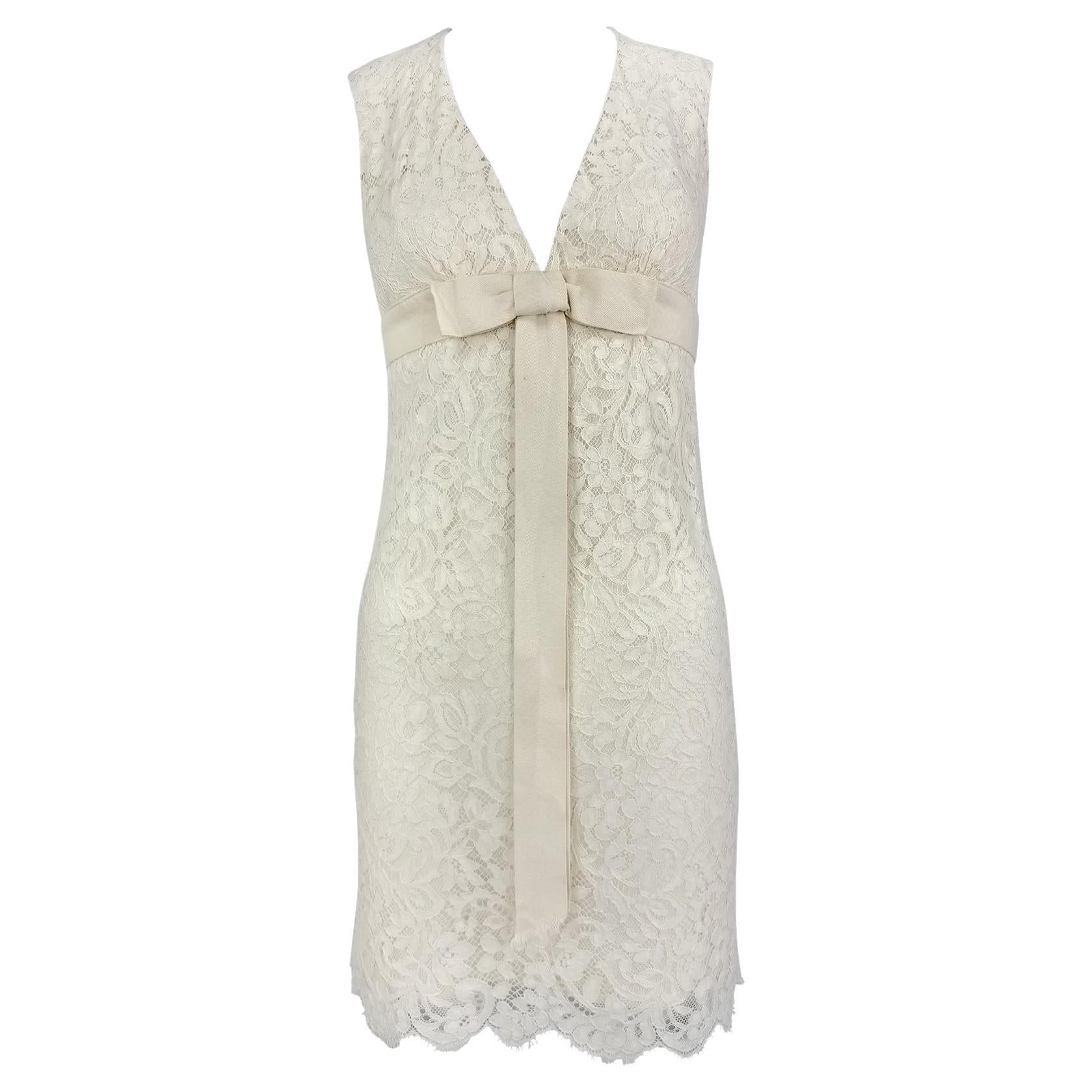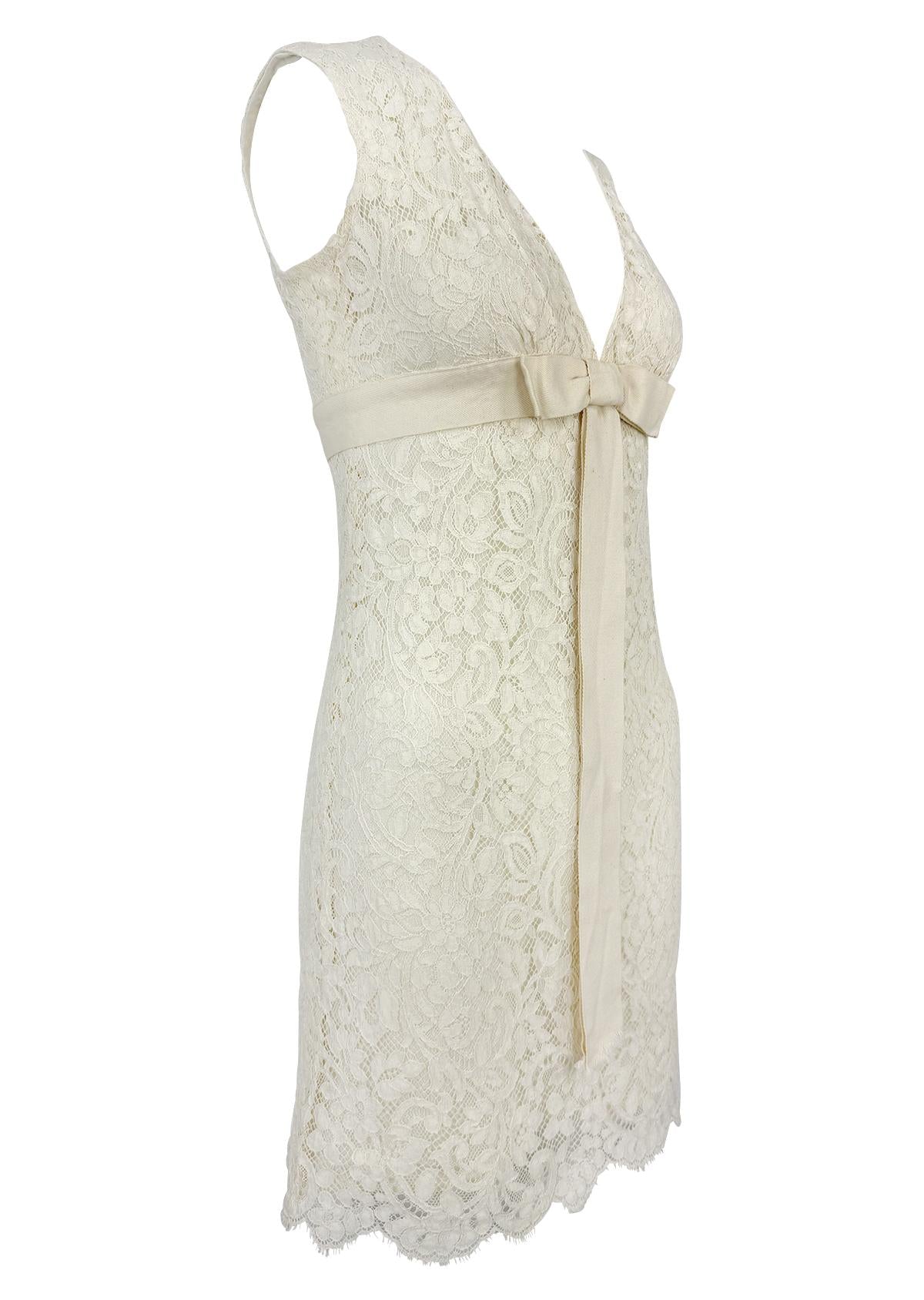 S/S 2006 Michael Kors Off-White Lace Bow Sleeveless Mini Dress